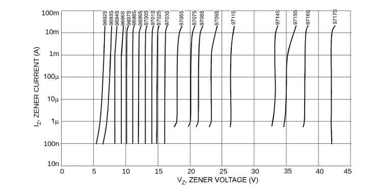 Najprostsze i historycznie najbardziej popularne są źródła diodowe, w tym diody Zenera. Klasyczna dioda krzemowa włączona w kierunku przewodzenia ma stosunkowo dobrze określoną zależność napięcia (VF) od prądu (IF), ale charakterystyka ta silnie zależy od temperatury złącza p-n, co jest powszechnie wykorzystywane w budowie prostych czujników temperatury. Każda dioda Zenera pracująca w kierunku zaporowym daje napięcie znacznie stabilniejsze (a więc bardziej użyteczne jako punkt odniesienia – patrz rysunek 11), jednak ma swój własny współczynnik temperaturowy, a ponadto bywa źródłem znacznych szumów.
