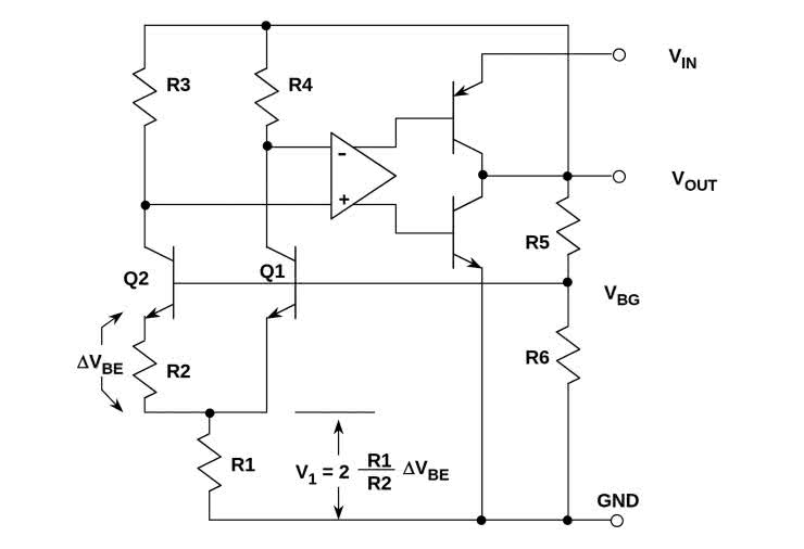 Prawdziwym przełomem w elektronice analogowej było wprowadzenie źródeł typu bandgap. Ich idea wynika z faktu, że napięcie złącza baza-emiter tranzystora bipolarnego ma ujemny współczynnik temperaturowy (tak samo, jak zwykła dioda krzemowa), natomiast odpowiednio wygenerowane napięcie proporcjonalne do temperatury bezwzględnej (określane mianem PTAT – ang. Proportional To Absolute Temperature), ma współczynnik dodatni. Sumując oba składniki w odpowiedniej proporcji, można otrzymać napięcie wyjściowe o minimalnym dryfie temperaturowym, zbliżone do napięcia przerwy energetycznej krzemu (około 1,2 V). Z układowego punktu widzenia idea źródła typu bandgap jest bardzo atrakcyjna: z uwagi na prostotę konstrukcyjną dobrze nadaje się do integracji w większych układach analogowych, działa przy niskim napięciu, może pracować przy znikomym prądzie zasilania, a w dodatku umożliwia uniknięcie stosowania zaszumionych struktur Zenera. Z tego względu stanowi ono serce znakomitej większości współczesnych, scalonych źródeł napięcia odniesienia, zarówno szeregowych, jak i równoległych.