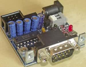 Programator (fotografia 2) to zwykły konwerter poziomów zawierający MAX232 lub jego odpowiednik. Płytka mikrokontrolerowa jest programowana za pomocą RS232 i jest to pewien mankament rozwiązania, ponieważ współczesne komputery są pozbawione tego portu i trzeba stosować przejściówkę. Zapewne z czasem firma Conrad uzupełni ofertę o adapter USB/UART. Z drugiej strony, złącze programujące jest typowe (IDC6), a dla płytki jest dostępna pełna dokumentacja, więc można posłużyć się dowolnym adapterem dostępnym w handlu.