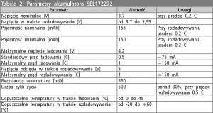 Spośród oferowanych modułów szczególnie warto zwrócić uwagę na ultra-cienki model SEL172272 (fot. 1.) o pojemności 155 mAh, który cechuje się wyjątkowo małą grubością - nie przekracza ona 2,2 mm. Został on zaprojektowany z myślą o takich urządzeniach, jak klawiatury bezprzewodowe Bluetooth - i tak, jak pozostałe moduły Seiko Instruments, do jego budowy użyto niezawodnych japońskich układów scalonych i pasywnych. Parametry SEL172272 zostały zebrane w tabeli 2., a na rysunkach przedstawiono jego charakterystyki pracy.