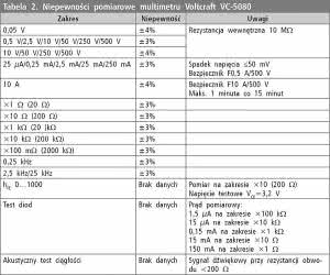 W tabeli 2 podano niepewności pomiarowe uzyskiwane na poszczególnych zakresach. Maksymalna niepewność jest rzędu 4%.