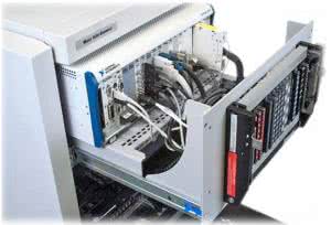 Rozwiązaniem elastycznym i dopasowanym do tych potrzeb jest kolejny produkt Partnera NI, IRS Systementwicklung GmbH (rysunek 9). Został on zaprojektowany z myślą o przeprowadzaniu testów produkcyjnych ECU i charakteryzuje się modułową architekturą, którą dobrze zintegrowano z platformą NI PXI. Jego głównym elementem jest obudowa mająca 28 slotów na karty obciążające (rysunek 10) o wielkości 6U, przełączające prądy o natężeniu do 50 A i różniące się pod względem liczby kanałów.