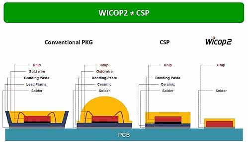 Rysunek 1. Technologia Wicop2 umożliwia całkowite wyeliminowanie standardowej obudowy, umożliwiając bezpośredni kontakt chipu diody LED z aluminiowym podłożem PCB
