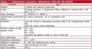Wybrane parametry luksomierza umieszczono w tabeli 1. Jego podstawowym zastosowaniem jest kontrola jakości oświetlenia w miejscach pracy, salach wykładowych, pomieszczeniach użyteczności publicznej, na drogach, chodnikach itp. Może przydać się również konstruktorom-elektronikom zajmującym się opracowywaniem źródeł światła, testowaniem sprawności świetlnej diod LED i innymi czynnościami tego typu.