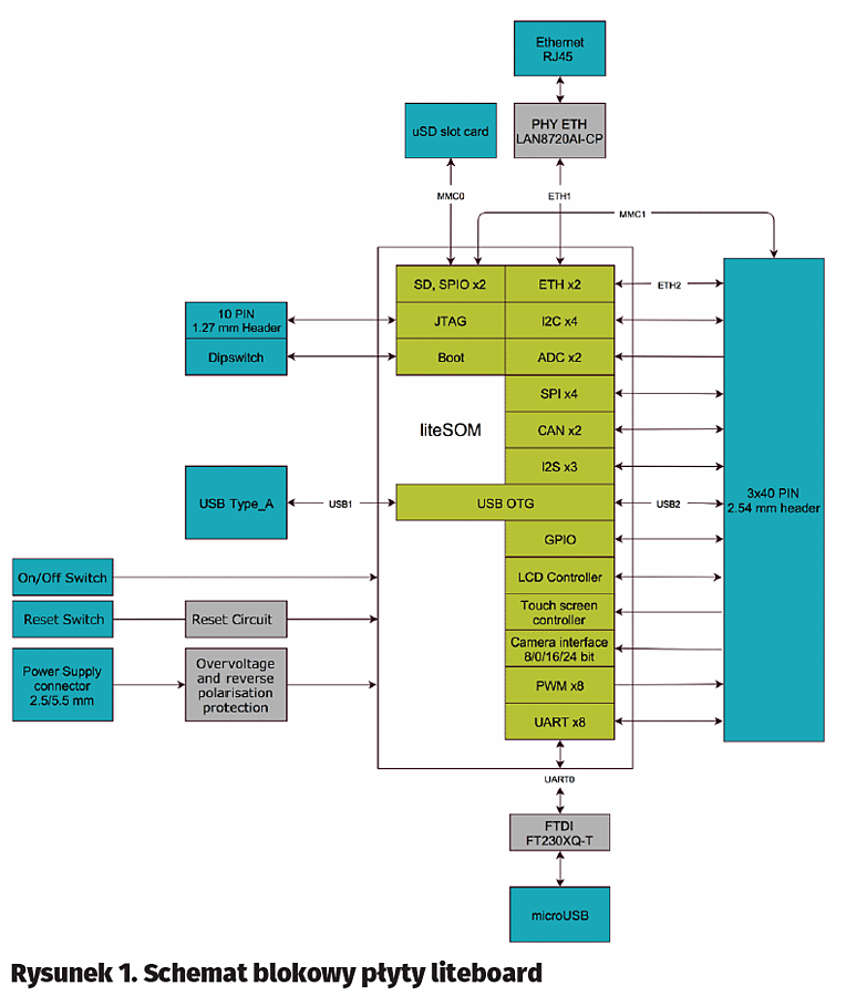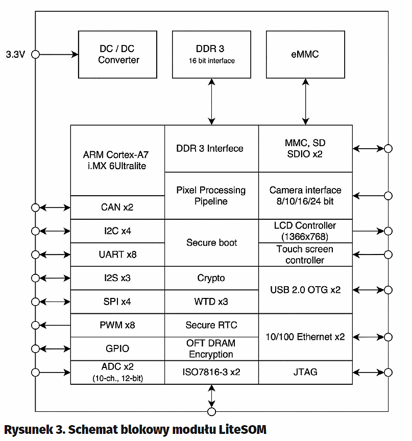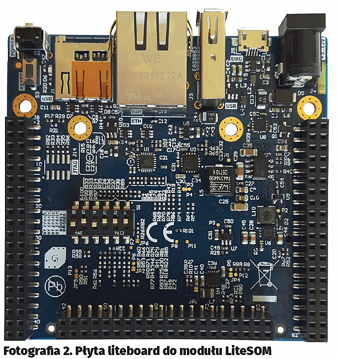 Dodatkowe informacje: Moduł liteSOM przy swoich niewielkich gabarytach kreuje ogromne możliwości użytkowe dzięki wbudowanej pamięci RAM, Flash i szeregowi interfejsów komunikacyjnych, w tym dwóm interfejsom Ethernet 10/100, które z powodzeniem umożliwiają tworzenie urządzeń IoT. |
