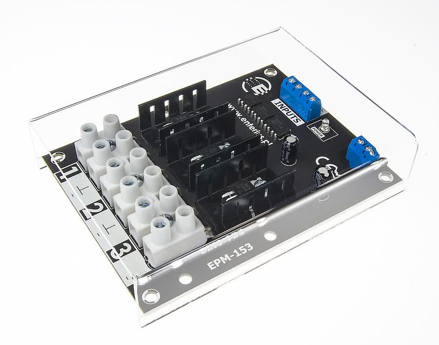 Ale to wciąż nie wszystko! Wzmacniacz ma unikatowy, cyfrowy układ regeneracji kształtu modulacji PWM, stosowanej do regulacji jasności i kolorów taśm LED. Modulacja ta teoretycznie powinna mieć przebieg prostokątny, ale w praktyce nie zawsze tak jest. Elementy instalacji oświetlenia LED, takie jak: przewody, filtry przeciwprzepięciowe, a także zakłócenia i nawet same diody LED deformują przebieg zasilający PWM. Może to powodować problemy z synchronizacją sygnałów i w efekcie odchyłki jasności lub koloru w różnych punktach instalacji. Wzmacniacz EPM-153 eliminuje tego typu problemy. Wbudowany układ cyfrowy analizuje sygnał modulacji PWM na wejściach i przywraca jej właściwy kształt na wyjściach. Pozwala to na budowanie nawet bardzo rozległych i dużych instalacji oświetlenia LED bez problemów z synchronizacją sygnałów.