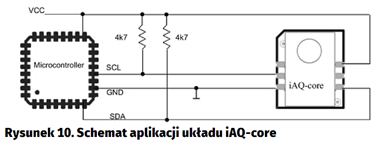 W aplikacjach zasilanych bateryjnie z potrzebą detekcji gazów VOC oraz określenia wartości bezwzględnej zanieczyszczenia zastosowanie znajdą układy detektorów gazów organicznych oraz jakości powietrza CCS801, CCS803, CCS811, AS-MLV-P2 (ams). Charakteryzuje je: zużycie energii do 46 mW, detekcja gazów VOC, TVOC, CO oraz etanolu, zakres temperatury pracy –5…+50°C, dostępność w obudowach DFN, LGA. Czas do startu pomiaru <25 ms. Wersja CCS811 ma zintegrowany MCU (rysunek 11).