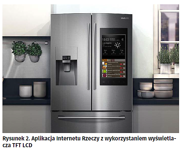 Istnieje wiele przykładów konsumenckiego zastosowania wyświetlaczy LCD: sprzęty gospodarstwa domowego, takie jak inteligentne pralki czy lodówki, różnego typu sterowniki, np. wbudowany w ścianę termostat, czy urządzenia ubieralne (np. smartwatche), to tylko niektóre przykłady (rysunek 2). Internet Rzeczy w połączniu z TFT LCD możemy zastosować wszędzie tam, gdzie mamy dostęp do stałego zasilania lub tam, gdzie użytkownikowi nie przeszkadza częstsze ładowanie urządzenia.