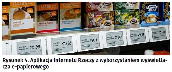 Wyświetlacze EPD zostały tak opracowane, aby imitować tradycyjny papier. W przeciwieństwie do modułów TFT LCD i OLED, e-papier jest idealnie czytelny nawet w bezpośrednim naświetleniu słonecznym. Jednak z drugiej strony, brak podświetlenia może stać się problematyczny w sytuacji, gdy chcemy korzystać z tej technologii w słabo oświetlonych miejscach. Można tutaj rozważyć dodanie podświetlenia, ale trzeba pamiętać, że takie rozwiązanie zwiększy pobór energii. Najpopularniejsze moduły EPD to wersje z czarno-białą matrycą. Jednak, jeżeli w danej aplikacji ważne jest podkreślenie części wyświetlanej informacji warto rozważyć również zastosowanie wersji z dodatkowym trzecim kolorem (czerwonym lub żółtym). Tego typu panele idealnie nadają do wykorzystania, np. jako e-ceny (rysunek 4).