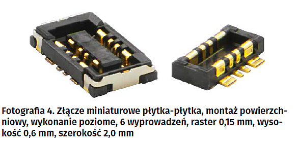 Miniaturowe złącza o wysokości zaledwie 2 mm umożliwiające transmisję 6 sygnałów niskonapięciowych pomiędzy płytkami PCB. Są przeznaczone do urządzeń elektroniki „noszonej” tj. smartwatchy, aplikacji dla sportowców, osobistej medycyny, nawigacji itp.
