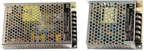 - Chłodzenie konwekcyjne (swobodny przepływ powietrza (seria LM350-xxBxx: wbudowane sterowanie włączania wentylatora, wymuszone chłodzenie powietrzem za pomocą wbudowanego wentylatora prądu stałego).