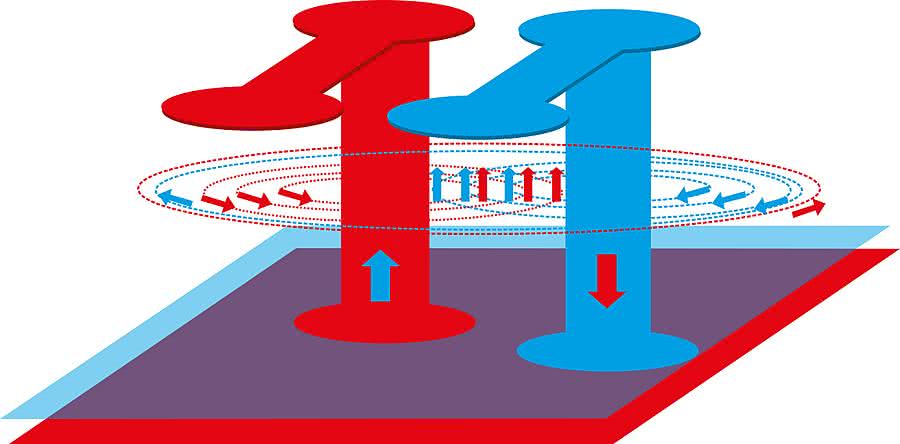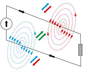 Rysunek 5. Dwa tryby przepływu prądu w.cz.: różnicowy i wspólny – wizualizacja lini sił pola magnetycznego