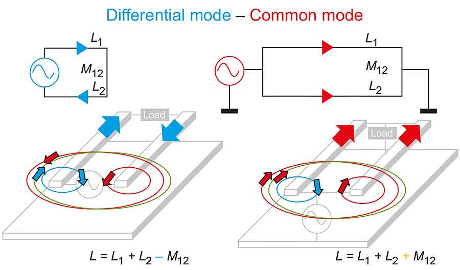 Rysunek 4. Dwa tryby przepływu prądu w.cz.: różnicowy i wspólny