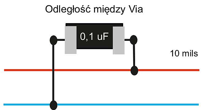 Rysunek 10. Zalecenia do układania przelotek do kondensatorów odsprzęgających