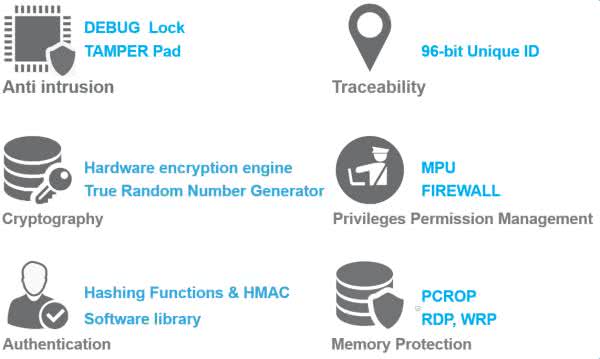 Energooszczędne mikrokontrolery mogą być idealnymi elementami dla aplikacji IoT zasilanych bateryjnie. Urządzenia końcowe IoT oprócz niskiego poboru energii powinny zapewniać bezpieczeństwo transmisji i odporność na ataki hakerów. W części mikrokontrolerów rodziny STM32L0 zaimplementowano rozwiązania ułatwiające zbudowanie systemu bezpieczeństwa dla urządzeń IoT (rysunek 15):