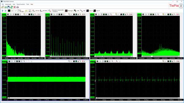 Oscyloskopy WiFiScope WS6 dostępne są w wersji XM, czyli z pamięcią akwizycji rozszerzoną do 256 MSa w stosunku do 1 MSa wersji standardowej. Tak duży rozmiar pamięci stawia urządzenia firmy TiePie w czołówce aktualnej oferty rynkowej. Jednak po dokładnej analizie okazuje się, że rozmiar pamięci nie został dobrany przesadnie. Przetworniki pomiarowe oscyloskopów mogą pracować z rozdzielczością nawet 16 bitów i tym parametrem przyrządy również przodują na tle konkurencji. Wyższa rozdzielczość przekłada się na większą precyzję pomiarów, ale także na mniejszą szybkość akwizycji i większą zajętość pamięci. Podczas pomiaru w rozdzielczości 14 bitów na wszystkich czterech kanałach dostępna pamięć wynosi 32 MSa na kanał, a szybkość próbkowania spada do 100 MSa/s.