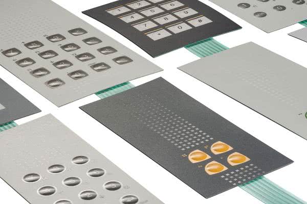 Kradex dysponuje również gotowymi klawiaturami membranowymi z określoną liczbą przycisków funkcyjnych dostosowanych do naszych produktów. Istnieje możliwość wykonania klawiatury pod indywidualne potrzeby klienta oraz nadruków na przyciskach funkcyjnych (fotografia 8).