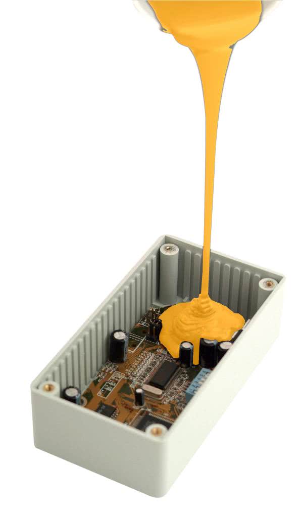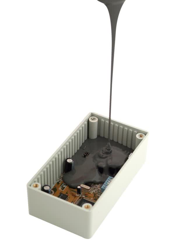 Najwyższy stopień ochrony urządzenia zapewnia całkowite zalanie modułu elektronicznego w obudowie tzw. potting. Dostęp do chronionego urządzenia jest w tej metodzie trudny lub niemożliwy, ale w wielu aplikacjach pracujących w ekstremalnych warunkach np. elektronika morsa czy górnicza, jest to jedyna metoda gwarantująca sukces. Do zalewania elektroniki stosuje się generalnie preparaty dwuskładnikowe, każdy ma swoje zalety i wady. Poniżej znajduje się krótka charakterystyka.