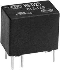 Jednymi z najbardziej popularnych przekaźników są komponenty serii HF115F. Dostępne są dziesiątki różnych modeli do zastosowań uniwersalnych oraz specjalizowanych, a także wiele osprzętu, takiego jak gniazda do przekaźników. Przekaźniki serii HF115F to miniaturowe przekaźniki mocy, o wymiarach 29×13×16 mm, przeznaczone do montażu na PCB (fotografia 5).