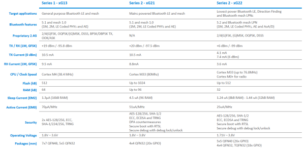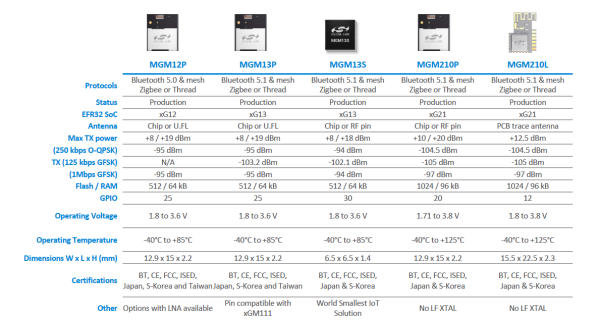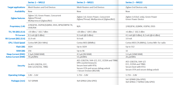 Rodzina produktów serii EFR32MG od zawsze umożliwia komunikację z użyciem wielu standardów bezprzewodowych. Pierwsza seria układów umożliwiała komunikację w standardach ZigBee, Thread, Bluetooth, 2,4 GHz Proprietary oraz SubGHz (oddzielny tor radiowy w serii EFR32MG13).
