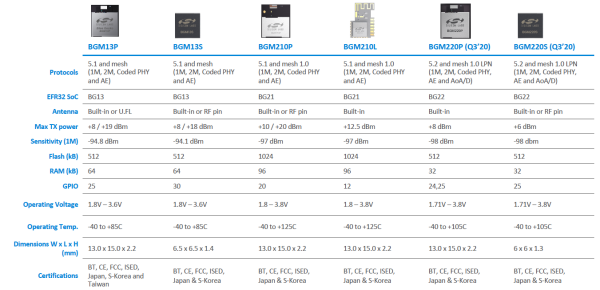 Popularny standard komunikacji Bluetooth, dzięki wprowadzeniu na rynek stosu komunikacyjnego w wersji 5.2, który umożliwia lokalizację użytkowników w przestrzeni, zyskał nowe obszary zastosowań. Układy serii EFR32BG22 umożliwiają rozwijanie aplikacji wykorzystujących funkcjonalność AoA/AoD. Projektanci stosujący standard Bluetooth mają do dyspozycji zarówno układy SoC (rysunek 10), jak i w pełni certyfikowane moduły (rysunek 11).