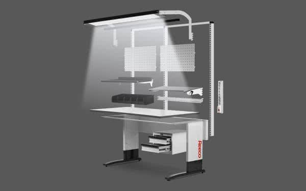 Możliwości organizacji przestrzeni pracy nie kończą się na stanowisku roboczym. Stosownie do potrzeb, system można rozwijać na całe otoczenie stanowiska, np. w zakresie przepływu serwisowanych urządzeń, komponentów, podzespołów z magazynu i pomiędzy stanowiskami. Ofertę mebli uzupełniają stacjonarne oraz mobilne szafki przemysłowe, a także szafy i regały magazynowe o konstrukcji zapewniającej bezpieczne przechowywanie części, narzędzi, akcesoriów, dokumentów, odzieży ochronnej itd. Stoły, a później stanowiska mogą być rozszerzane i modyfikowane wraz z rozwojem działalności i zmieniającymi się potrzebami.
