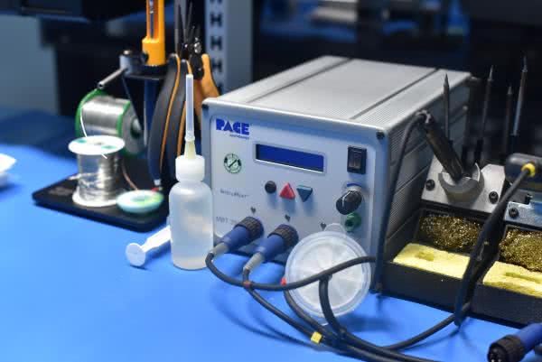 Drugim podstawowym elementem stanowiska pracy elektronika jest stacja lutownicza. Uznane, najwyższej klasy urządzenia w tym zakresie od lat dostarczają międzynarodowe koncerny JBC i PACE. Doskonałym przykładem niezawodnego urządzenia jest DDPE Precision – cyfrowa stacja dwunarzędziowa, do napraw precyzyjnych. Jest to urządzenie przeznaczone do szybkiej i precyzyjnej pracy z komponentami SMD. Jednostka sterująca JBC DDPE zarządza jednocześnie maksymalnie 2 narzędziami i jest w pełni kompatybilna z 10 różnymi narzędziami JBC w tym z precyzyjną rączką T210 i regulowanymi mikro pęsetami AM120.