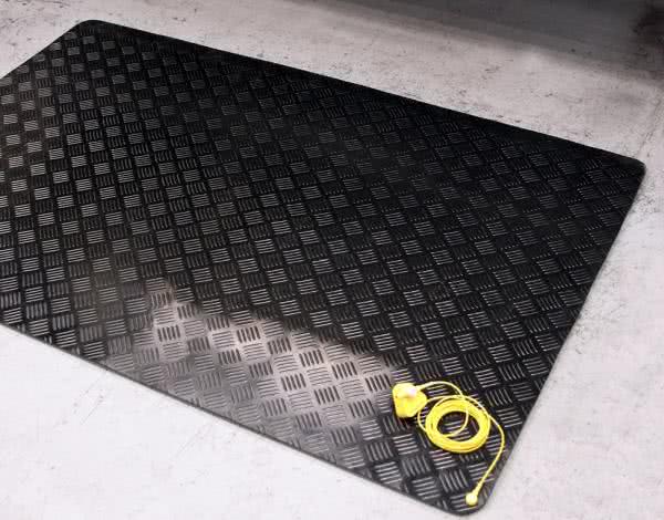 Zapobieganie gromadzeniu się ładunków elektrostatycznych wymaga przygotowania posadzki o właściwościach ESD. W domowych warunkach jest to trudne do realizacji. Dobrym zastępczym rozwiązaniem jest zastosowanie maty lub wykładziny ESD (fotografia 1), która dodatkowo zabezpiecza powierzchnię podłogową przed korozyjnym działaniem substancji chemicznych i pozwala na łatwe utrzymanie czystości.