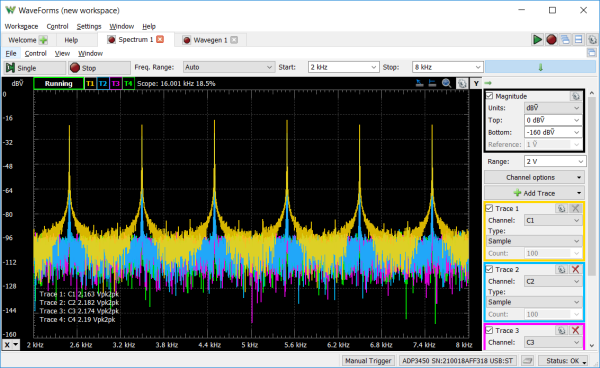 Z myślą o użytkownikach Analog Discovery Pro firma Digilent przygotowała bardzo rozbudowaną dokumentację oraz przykłady użycia, które są – tradycyjnie – dostępne bezpłatnie. I tak, oprócz „Starter Guide’a”, który prowadzi użytkownika za rękę po podstawowych możliwościach przyrządu, producent przygotował także przykłady ilustrujące autonomiczne wykonywanie pomiarów. Wśród nich znajduje się także „sztuczka” pozwalająca na wykorzystanie maksymalnej częstotliwości próbkowania w torze analogowym do 500 MHz, która to wartość nie jest dostępna w domyślnym trybie pracy przyrządu. Szczegóły są dostępne na stronie producenta.
