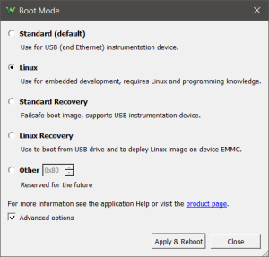 „Sercem” przyrządu Analog Discovery Pro jest układ z rodziny ZYNQ firmy Xilinx. Integruje on w swojej strukturze konfigurowalną część FPGA oraz 2-rdzeniowy mikroprocesor Cortex-A9, który działa „pod opieką” systemu operacyjnego Linux. Producent przyrządu umożliwił opcjonalne użycie interfejsu konsoli do komunikacji oprogramowania systemowego z użytkownikiem, co wymaga uruchomienia przyrządu w trybie Linux Mode Boot (rysunek 5).