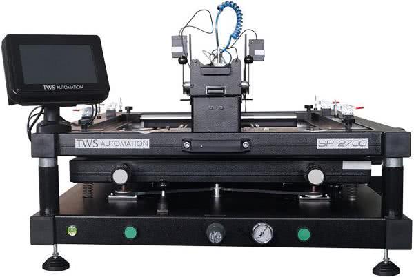 Oczywiście proces nadruku można usprawnić stosując alternatywnie urządzenie półautomatyczne. W produkcji małoseryjnej i prototypowej doskonale sprawdza się np. szablonowa drukarka TWS SR-2700 (fotografia 3). Duża powierzchnia nadruku – aż 675×585 mm i pierwszorzędne parametry techniczne sprawiają, że jest to produkt o doskonałym stosunku jakości do ceny. Dwie ręcznie sterowane kamery umożliwiają podgląd przy pozycjonowaniu płytki PCB względem szablonu. Urządzenie jest wyposażone w dwie niezależne, samopoziomujące, sterowane ciśnieniem, elektronicznie uruchamiane rakle oraz w system automatycznego odrywania płytki od szablonu z programowalną prędkością. Maksymalna obsługiwana grubość PCB wynosi aż 6 mm. Co istotne przy częstych zmianach procesu charakterystycznych dla produkcji małoseryjnej – urządzenie jest wyposażone w dotykowy panel operatorski i jest bardzo łatwe w użyciu.