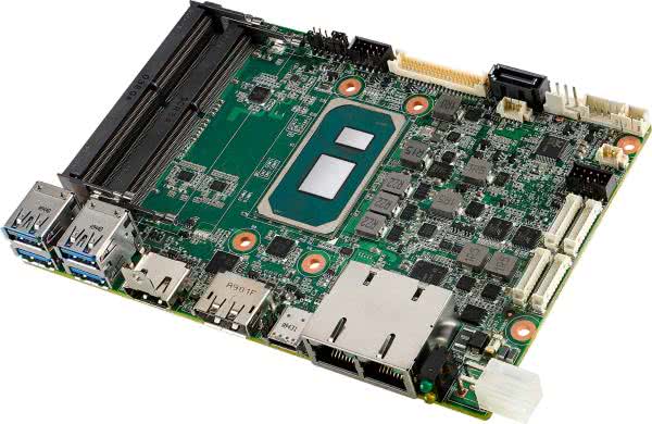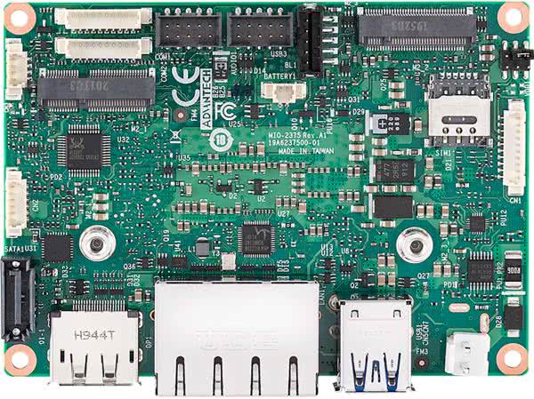 - MIO-5375 – jest to nowy produkt w ofercie 3,5-calowych komputerów jednopłytkowych z procesorem Intel Core jedenastej generacji. Ma dwukanałową pamięć DDR4-3200 do 64 GB. Komputer wyróżnia możliwość jednoczesnego wyświetlania do czterech obrazów poprzez złącza: 18/24-bitowy dwukanałowy LVDS w rozdzielczość 1920×1200 (opcjonalnie eDP do 5120×3200), HDMI do 4k, DP (do 5120×3200). Komputer jest wyposażony w zewnętrzne porty I/O: gigabit Ethernet ×2, HDMI/DP, USB 3.2 ×5. Zawiera też wewnętrzne porty I/O: SATA 3.0 ×1, USB 2.0 ×2, I2C, SMBus, COM ×2, GPIO 8-bit, LPC, CAN Bus, TPM 2.0. Możliwe są również rozszerzenia poprzez moduły: M.2 z kluczem E 2230, z kluczem B 3042, z kluczem M 2280. Pozostałe parametry płyty to port rozszerzeń MIOe: 4 PCIe ×1 Gen 3, 1 USB 2.0, LPC, SMBus, Line-out, opcjonalnie DP, Power-on, Reset. Przy wymiarach 146×102 mm komputer jest zasilany napięciem 12...24 V.