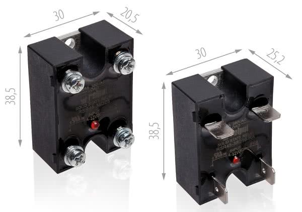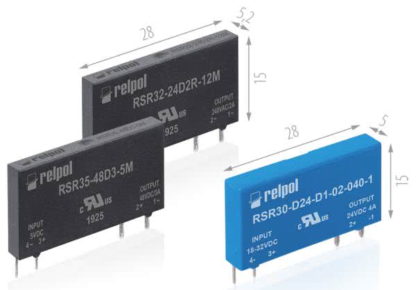 Kolejny model to miniaturowy przekaźnik półprzewodnikowy o szerokości 5 mm i obciążeniu 2 A na wyjściu przy napięciu 240 V AC. Element ten może być sterowany przy pomocy napięć 5, 12 i 24 V DC. W tej grupie wyróżniamy dwa wykonania tego przekaźnika w zależności od sposobu załączania obciążenia: załączanie w zerze lub załączanie w dowolnej chwili.