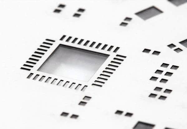 Do aplikacji pasty stosuje się urządzenie określane jako drukarka pasty lutowniczej (Solder Paste Printing Machine). W pierwszej fazie w drukarce umieszcza się płytkę oraz specjalny metalowy szablon, wykonywany na potrzeby każdego projektu płytki PCB, zawierający otwory w miejscach przeznaczonych do rozprowadzenia pasty (fotografia 5). Szablony najczęściej wykonane są z arkusza stali nierdzewnej z laserowo wyciętymi otworami. Bardzo ważne jest wzajemnie precyzyjne oraz stabilne umieszczenie zarówno płytki, jak i szablonu. Gdy do tego dojdzie, maszyna rozprowadza pastę po powierzchni szablonu – dzięki otworom substancja umieszczona zostaje jedynie w przeznaczonych do tego miejscach na płytce. Ważnym zagadnieniem jest kontrola ilości rozprowadzanej pasty. Aplikacja zbyt dużej jej ilości może spowodować rozlanie połączeń lutowniczych prowadzące do zwarcia, aplikacja zbyt małej może zaś przyczynić się do powstania niepoprawnego połączenia lutowniczego.