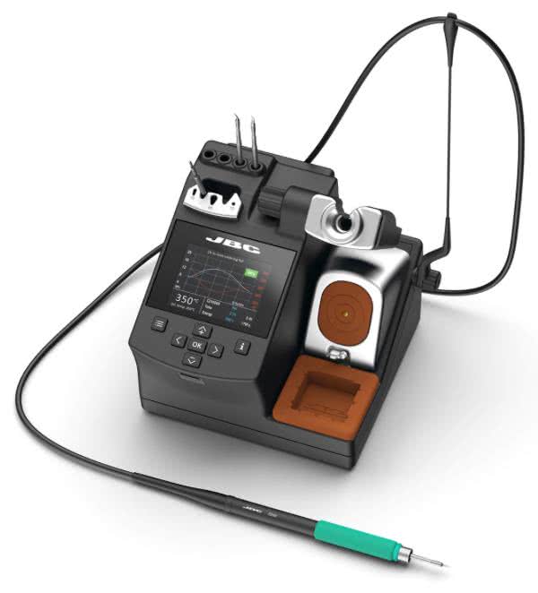 Przeważającą część prac montażowych, również w przypadku miniaturowych elementów rozmiaru SMD0603 czy nawet SMD0402, można wykonać za pomocą stacji lutowniczej. Jednak musi to być stacja opracowana specjalnie do takich precyzyjnych zadań, żadne uniwersalne urządzenia nie sprawdzą się w takim zastosowaniu. Doskonałym wyborem jest cyfrowa stacja lutownicza JBC typu JBC--CDE-2BQA (fotografia 1) wyposażona w funkcję asystenta lutowania – Soldering Assistant.