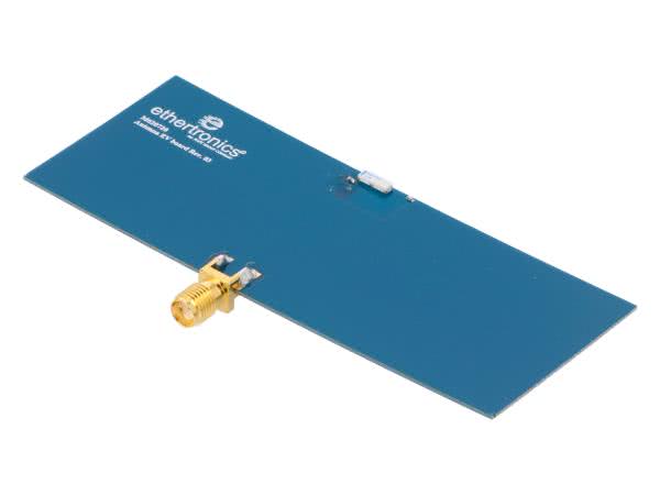 Anteny RF współpracują z modułami komunikacyjnymi o zakresie częstotliwości od 863 MHz do 928 MHz. Cieszą się one dużą popularnością, zwłaszcza w aplikacjach nadających/odbierających małe ilości danych. Odznaczają się bowiem bardzo przystępną ceną i należą do najłatwiejszych w implementacji: zazwyczaj za pomocą dedykowanych bibliotek, które umożliwiają konfigurację i transmisję za pomocą dosłownie kilku linii kodu. Tutaj Ethertronics oferuje dwa rozwiązania: kompaktową antenę w formacie elementu SMD oraz płytkę rozszerzającą podłączaną za pomocą przewodu z wtykiem SMA (fotografia 4). Ta ostatnia jest, de facto, modułem wyposażonym w antenę SMD – czyli narzędziem rozwojowym, przeznaczonym przede wszystkim do prac z prototypami, testów itp.