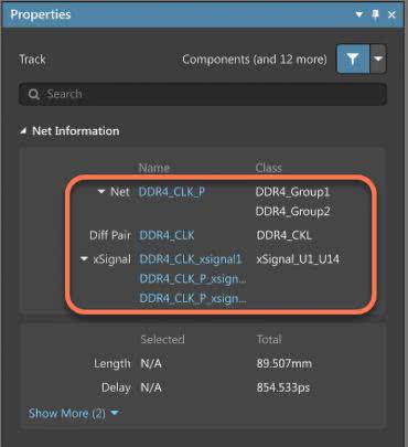 Obszar Net Information panelu Properties, od teraz wyświetla informacje o sieci, parze różnicowej czy xSignal dla wybranego obiektu elementarnego (rysunek 3).
