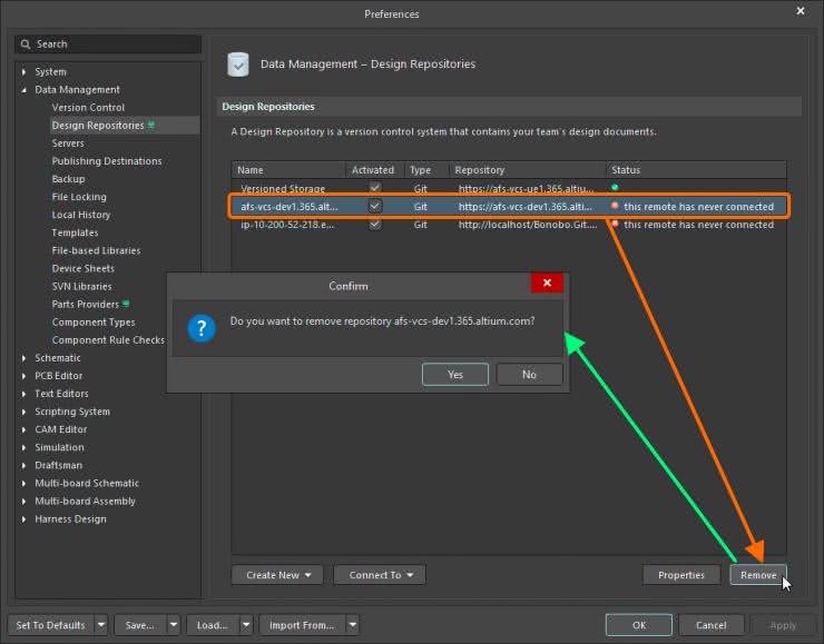 Podczas przesyłania do projektów do Workspace, które wcześniej były w systemie kontroli wersji, informacja o poprzednich repozytoriach jest przenoszona na serwer. Bieżąca wersja Altium Designer pozwala na ręczne bądź automatyczne usuwanie takich zbędnych repozytoriów (rysunek 6).