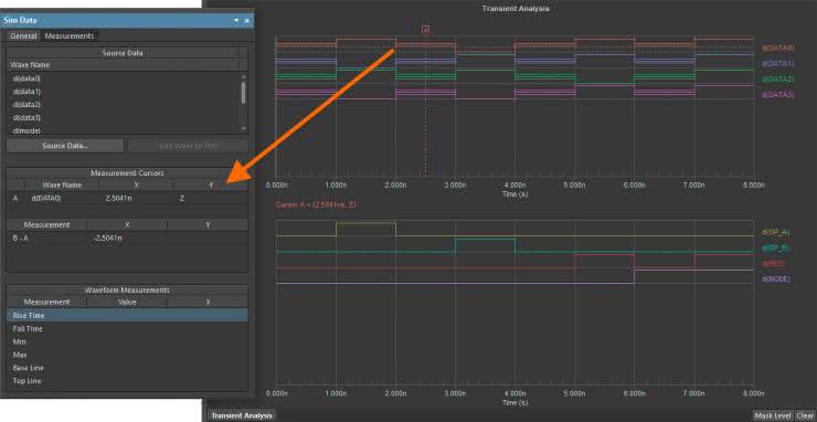 Wydajność edytora SimData została wyraźnie zwiększona, wprowadzono obsługę cyfrowych elementów PSpice - flip-flop/latch, pullup, pulldown, linia opóźniająca, LOGICEXP, obsługę modeli czasowych UDLY i UEFF bramek cyfrowych PSpice oraz dodano bramki standardowe, trójstanowe i generator cyfrowy do biblioteki Simulation Generic Components. Edytor SimData uzyskał możliwość wyświetlania stanu wysokiej impedancji przebiegów cyfrowych (rysunek 4).