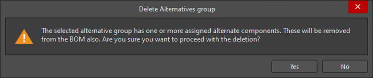 - podczas usuwania grupy alternatywnych komponentów, gdy komponent w tej grupie ma przypisany alternatywny komponent, zostanie wyświetlone stosowne ostrzeżenie (rysunek 7).