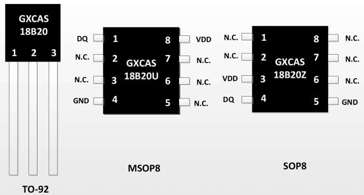 - GX18B20 - obudowa TO92, dokładność ±0,4°C,