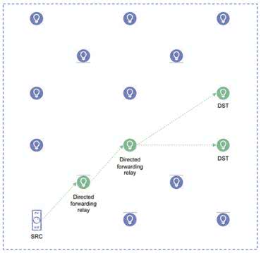 - Przekazywanie kierowane – funkcja poprawia skalowalność sieci poprzez dodanie nowego typu węzła – węzła przekazywania kierowanego, a także modeli konfiguracji, ścieżek oraz metody do ich tworzenia i utrzymywania (rysunek 7);
