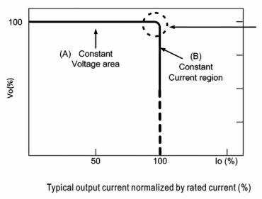 Parametry wyjścia są ustalone fabrycznie lub mogą być ustawiane za pomocą wbudowanych potencjometrów, sygnału napięciowego 1...10 V DC lub sygnału PWM. Nominalna lub zadana wartość napięcia (VO) zostaje utrzymana do momentu, w którym z zasilacza płynie prąd (IO) o maksymalnym natężeniu.