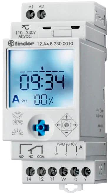 Urządzenia Finder serii 12.A4 realizują rozbudowane sterowanie czasowe, a ich konfigurowanie jest bardzo proste. Aby określić lokalizację, która jest wymagana do obliczenia wartości wschodów i zachodów słońca, wpisujemy kod pocztowy miejscowości instalacji zegara. Programowanie odbywa się za pomocą intuicyjnej aplikacji w telefonie przy użyciu NFC lub za pomocą miniaturowego joysticka na panelu urządzenia. Użytkownik ma do dyspozycji 50 programów, co daje dużą swobodę w budowaniu schematów oświetlenia.