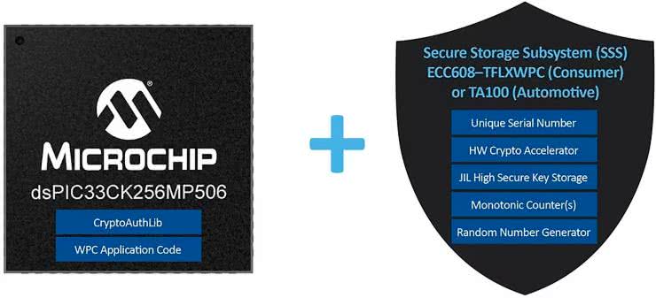 Microchip posiada licencję WPC i oferuje wstępnie skonfigurowane rozwiązania podsystemów bezpiecznej pamięci masowej, które zmniejszają złożoność i czas programowania. Zmniejsza także techniczną barierę wejścia, obsługując całą ceremonię klucza z głównym urzędem certyfikacji WPC. Działa jako kompletny certyfikowany projekt referencyjny, obejmujący MCU aplikacji, stos oprogramowania Qi 1.3, podsystemy bezpiecznej pamięci masowej z obsługą biblioteki kryptograficznej oraz usługi udostępniania zarówno dla zastosowań motoryzacyjnych, jak i konsumenckich (rysunek 3).