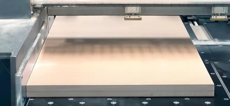 Produkcja PCB rozpoczyna się od dużego kawałka arkusza materiału. Ze względu na ograniczenia sprzętu do produkcji PCB i możliwości produkcyjnych, określone są wymagania dotyczące minimalnego i maksymalnego rozmiaru arkusza. Surowiec - laminat platerowany miedzią, należy przed rozpoczęciem produkcji przyciąć do rozmiaru przetwórczego za pomocą automatycznej maszyny do cięcia - fotografia 1.