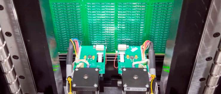 Ten etap służy do sprawdzania integralności ścieżek i połączeń otworów przelotowych. Pozwala sprawdzić, czy na gotowej płytce nie ma otwartych obwodów ani zwarć. Istnieją trzy metody testowania: latająca sonda do mniejszych projektów i 4-przewodowe testowanie Kelvina (do PCB dla przemysłu motoryzacyjnego lub lotniczego). Każdą płytkę drukowaną testujemy elektrycznie. Za pomocą testera latającej sondy sprawdzamy każdą sieć, aby upewnić się, że jest kompletna (nie ma przerw w obwodach) i nie ma zwarć z żadną inną siecią - fotografia 12.