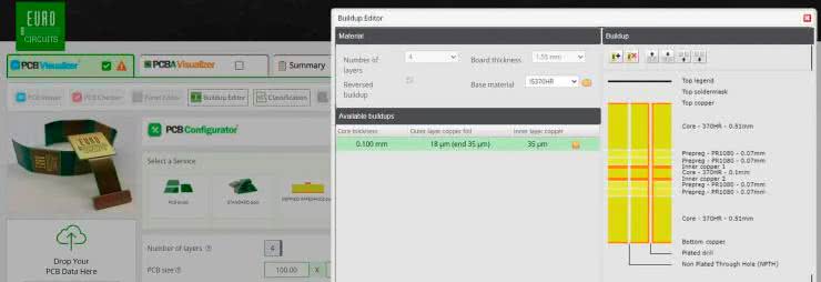Rdzenie i prepregi są dostępne w wielu grubościach, co pozwala producentom na tworzenie nieskończenie wielu warstw. Eurocircuits oferuje ponad 975 predefiniowanych warstw!