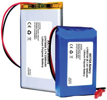 Nowoczesne akumulatory litowo-polimerowe to wiodący rodzaj ogniw w portfolio marki Akyga Battery. Zakres oferty tego typu ogniw sukcesywnie jest rozszerzany - aktualnie obejmuje ponad 1000 różnych rodzajów akumulatorów o pojemnościach od nawet poniżej 10 mAh do ponad 10 000 mAh. Oprócz akumulatorów pracujących z napięciem 3,7 V w standardowych temperaturach i z obciążeniem dostępne są także rozwiązania do bardziej wymagających aplikacji: połączone w pakiety (napięcie pracy jest wielokrotnością 3,7 V), mające wyższe prądy ładowania/rozładowania (nawet rzędu kilkudziesięciu amperów), mogące pracować w ekstremalnych temperaturach (od -40°C do nawet 85°C). Co szczególnie ważne, m.in. w aplikacjach elektroniki ubieralnej - akumulatory mogą mieć również różne kształty.