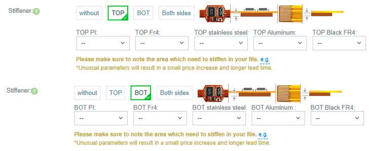 Na koniec tej części artykułu dodajmy jeszcze informacje na temat wykończenia obwodów elastycznych i sztywno-giętkich. Producent oferuje dwa podstawowe kolory soldermaski (zielony oraz czarny), stosowane w części usztywnionej (tj. przeznaczonej do montażu komponentów SMD). W zakresie zabezpieczenia powierzchni padów firma umożliwia wybór jednej z następujących technologii: